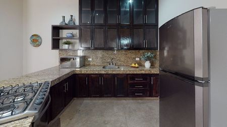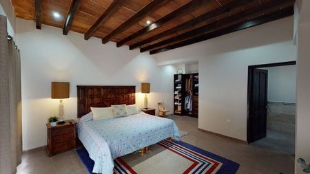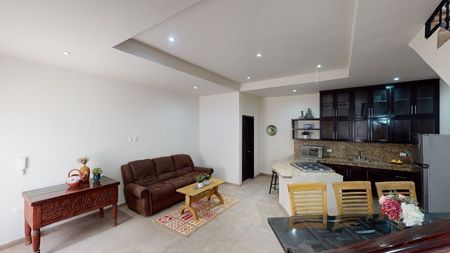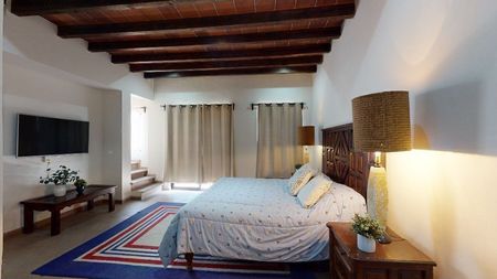 Este hermoso departamento de dos pisos más terraza con jacuzzi está ubicado en el centro de San Miguel de Allende. Con una recámara y un baño y medio, ofrece espacios muy luminosos y una amplia cocina equipada. Los acabados modernos mexicanos, como granito, piedra de cantera y vigas de madera, crean una combinación perfecta entre lo moderno y lo colonial. Situado en una amplia servidumbre de paso privada que conecta de calle a calle, ofrece una ubicación segura y privada.